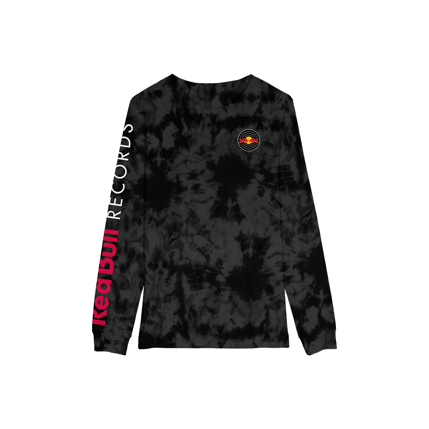Red Bull Records is proud to present our 2024 apparel collection. This tie-dye long sleeve shirt has the Red Bull Records circular logo on the chest and our text logo running the length of the right sleeve. This item is printed on a 100% cotton blank.